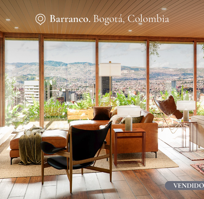 Barranco es un proyecto inmobiliario ubicado en la ciudad de Bogotá. Se caracteriza por su diseño contemporáneo que integra el exterior con el interior, rodeando los apartamentos de vegetación, incluyendo especies aromáticas y frutales. Barranco está ubicado cerca de los cerros orientales y se encuentra vendido en su totalidad. Financiado Por Comerce Fondo de Inversiónes. Nuestra Inversión 11.000.000.000